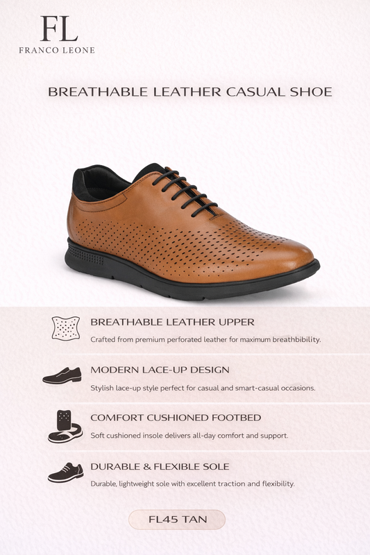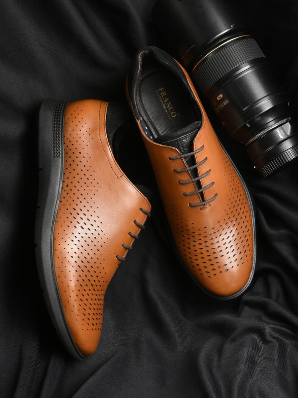 ? Smooth leather upper with all-over perforation delivers a breathable and contemporary edge.? Lace-up closure ensures a precise fit, perfect for both smart casual and business looks.