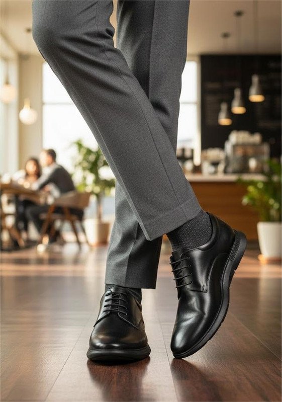 ? Classic derby lace-up design fused with a sporty sole adds urban sophistication to formal wear. Sleek full-grain leather upper delivers a clean, modern aesthetic with a subtle shine.