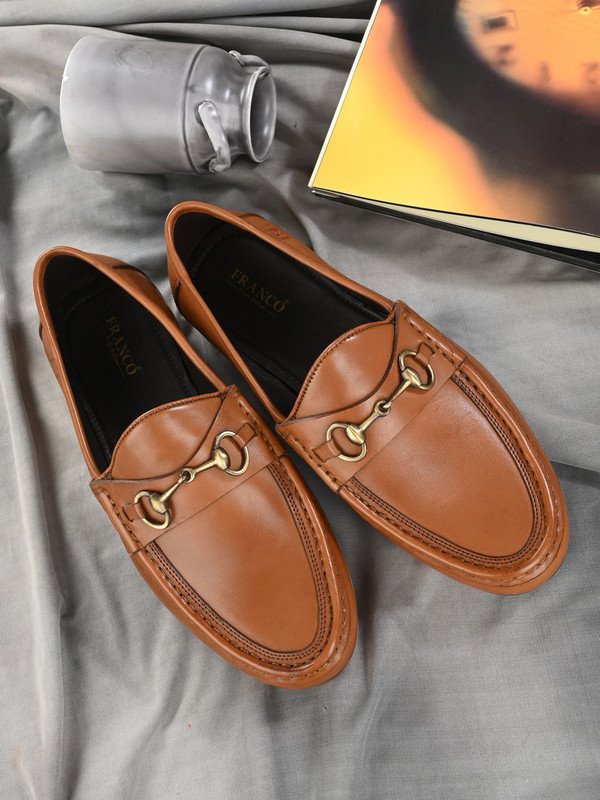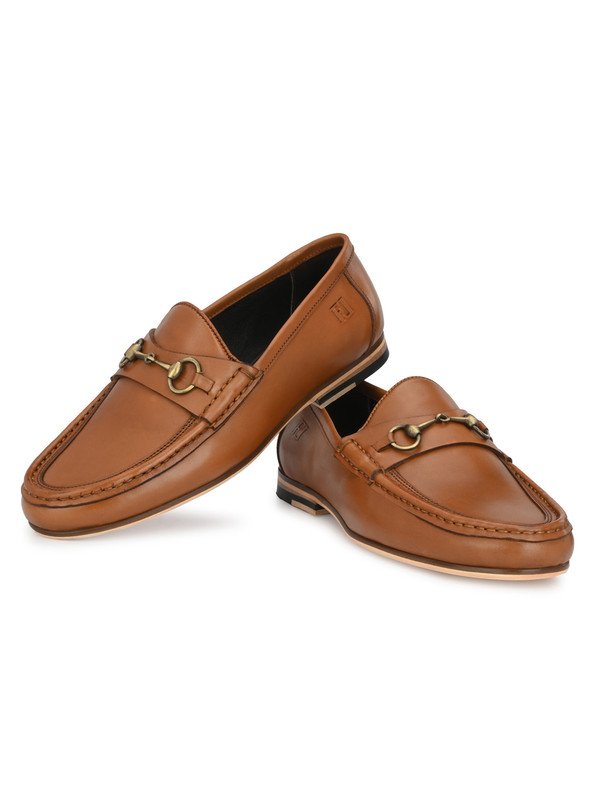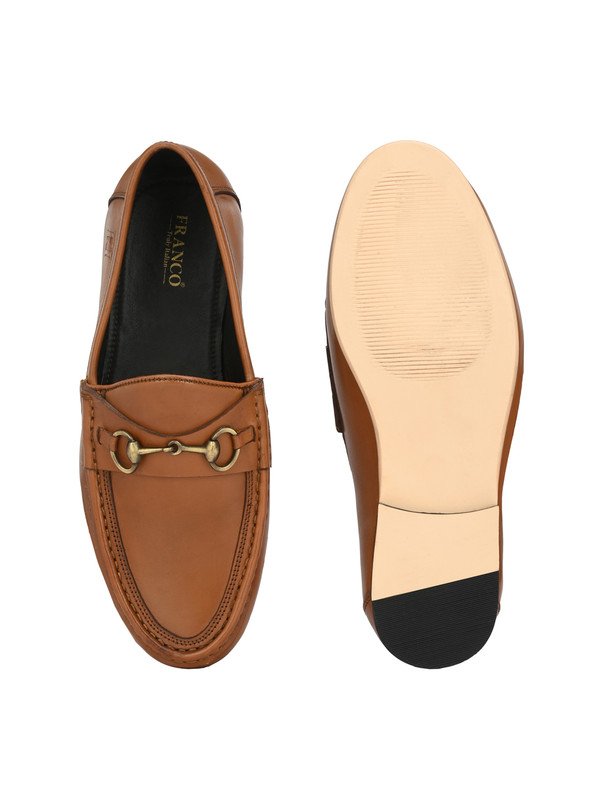 ? Sleek leather finish paired with a metallic horsebit detail for a refined, upscale appeal.? Slip-on silhouette makes it ideal for effortless dressing and timeless formal style.
